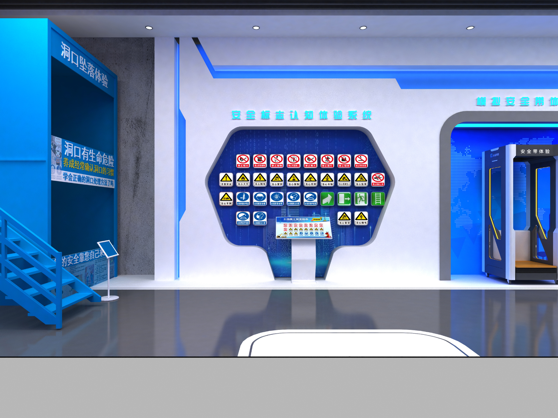 1.标识导视系统设计:清晰明确的区域指引和操作规范展示,使培训流程井然有序